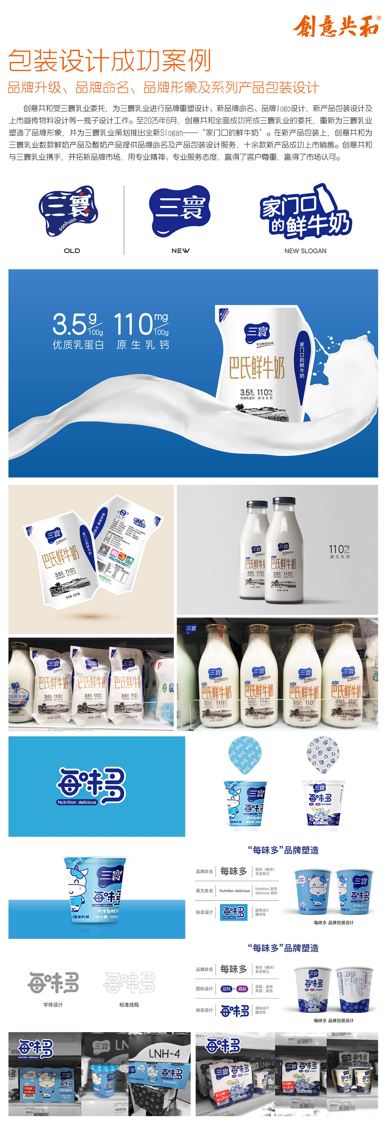 在企业与城市地标品牌VI设计中,创意共和的场景适配能力尤为突出。梭鱼湾国际足球场全套VI设计不仅包含LOGO,更涵盖色彩系统、字体规范及应用规范,小到办公用品、证件设计,大到场馆导视、广告宣传,均以波浪线条与蓝色为主基调,强化地域文化与体育属性的结合;大连市上海商会VI设计通过统一的色彩与版式规范,让品牌形象在会员手册、活动海报、商务礼品等场景中保持一致,同时为不同活动主题预留视觉调整空间,兼顾统一性与灵活性;三寰乳业品牌VI升级则是企业领域的典型案例,团队保留旧LOGO的奶牛斑纹外形轮廓,通过更具设计感与条理性的处理实现扁平化、现代化诠释,同时为“三寰”字体注入现代美感与力量感,配合“家门口的鲜牛奶”Slogan优化包装视觉,让升级后的品牌形象更贴合2026年消费者审美,推动产品销量稳步增长。